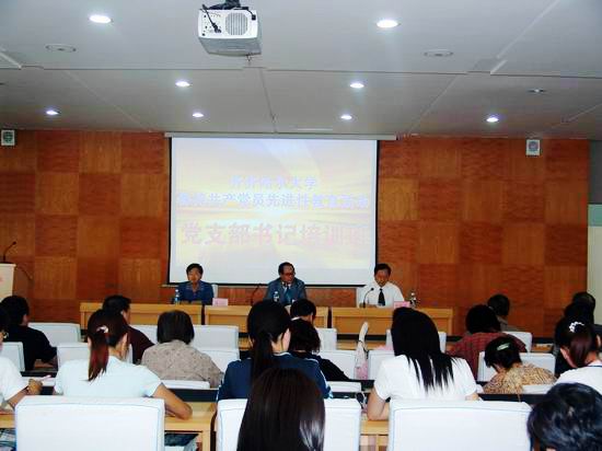 9月15日下午4:00,学校党委先进性教育活动领导小组在西区主楼7楼学术报告厅举办了党支部书记培训班,校党委书记、校保持共产党员先进性教育活动领导小组组长陈承贵、校党委副书记、校保持共产党员先进性教育活动领导小组副组长史铁成、校党委组织部部长、校保持共产党员先进性教育活动领导小组办公室主任盖元臣出席培训班,学校先进性教育办公室及各工作组成员、各基层党委、党总支、直属党支部和基层党支部书记参加了培训班学习。