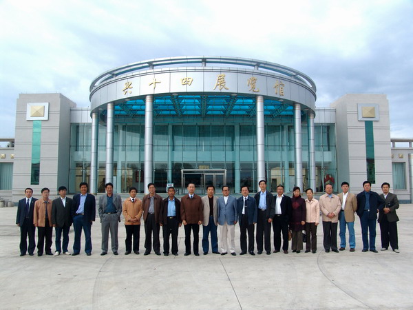 在兴十四村,校领导们首先参观了村史展览馆,观看了见证兴十四村50年发展历程的珍贵图片和大量实物,兴十四村是1956年在一片荒原上建立的山东移民村,地处偏远内陆,不靠水、不靠山、不靠城,交通不便,土地贫瘠,但是在村党总支书记付华廷的带领下,却发生了翻天覆地的变化,由住马架子、吃救济粮的贫穷落后村变成了全国先进性、富裕村,成为全省小康第一村。2002年,兴十四村组建了富华集团并成功上市。到2004年底,兴十四村已拥有33家企业,固定资产9个亿,人均收入1.3万元,实现了农业现代化、农区工业化、农村城镇化和农宅别墅化。在离开展览馆的时候,校长唱江华应邀为村史展览馆题词“学习兴十四精神,走创业发展之路”。