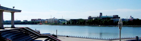 建筑是凝固的音乐。钟灵毓秀的劳动湖,风光旖旎,“冬季滑冰,夏日泛舟;春览柳绿,秋赏叶红”,四季盛景变换,游人流连忘返。位于中华西路西段的西虹桥横跨碧波荡漾的劳动湖。倚此桥向西南远眺,我校的国际交流学院、博士专家公寓、留学生公寓和音乐厅、艺术中心、游泳馆、购物中心、培训中心、文化宫、中区教学主楼等沿湖建筑依次延伸,特别是紧邻西虹桥头的三栋28层的国际交流学院、博士专家公寓和留学生公寓拔地而起,宛若亭亭玉立于劳动湖畔的鹤之仙子,正在成为广大群众瞩目的一道文化新景。如诗似画的齐大沿湖建筑群,宛若绚丽多彩的交响音符翔动在这美仑美奂的湖光水色之间。师生徜徉其间,莫不受此美景的育化;游人览经此地,无不感叹匠心之蕴。楼宇倚湖,馆舍陈岸,错落有致,独具韵味,体现着大学的丰厚文化底蕴与时代气息。