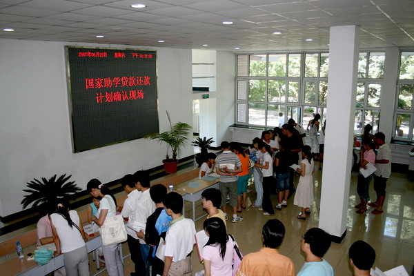 为方便毕业生办理还款确认手续,我校本年度改变了以往由经办银行工作人员向学生进行讲解并逐一办理手续的传统做法,而是由经办银行工作人员对学校各单位、各学院相关工作人员进行了严格培训;在此基础上,各学院对学生开展诚信教育,由受培训的工作人员指导贷款毕业生填写还款协议,最后由经办银行工作人员对贷款学生进行现场审核与确认。