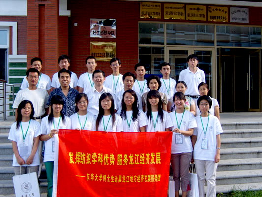 该调研团一行15人,由4名博士生、11名硕士生组成,由我校轻工纺织学院2006届考入东华大学硕士研究生的曹胜彬同学领队,于7月13日到达我校, 受到了我校轻工纺织学院师生的热烈欢迎与学生处有关人员的热诚服务。
