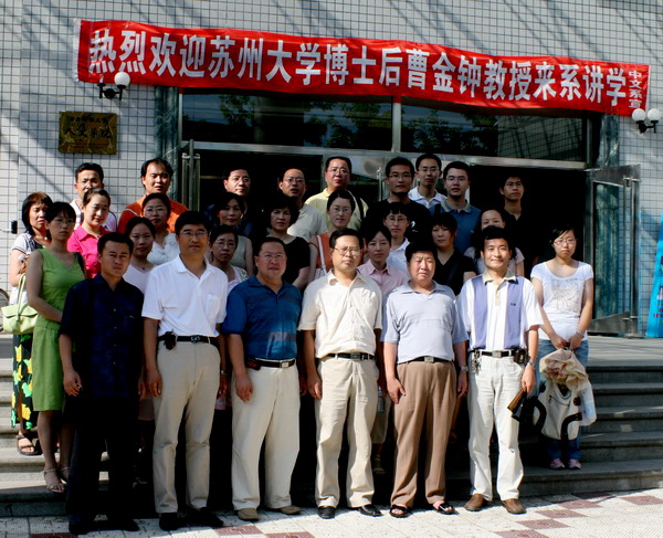 7月13日下午2:10,我校人文楼204阶梯教室济济一堂,苏州大学博士后曹金钟教授应人文学院中文系盛邀,来校为师生讲学,人文学院中文系300名师生聆听了讲座。