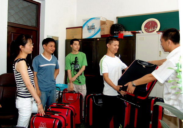 海深千尺送帆行,帆行万里念海恩。在10名志愿者赴西部工作之际,校团委老师代表学校为每位同学赠送了精美、实用的便捷式行李箱,并举行热烈的欢送仪式为他们壮行,勉励他们在西部基层工作岗位大力弘扬我校的优良传统,努力工作,以实际行动为西部的发展与振兴贡献自己的青春、智慧和力量,报效祖国,为校争光。作为他们的母校,将永远支持他们的并欢迎他们“常回家看看”!