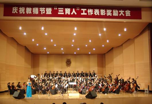 大会结束后,我校具有国内一流水准的交响乐团为广大教师奉献了一场高水平的专场音乐会。在高雅美妙的音乐声中,广大教职员工度过了一个难忘而有意义的教师节。