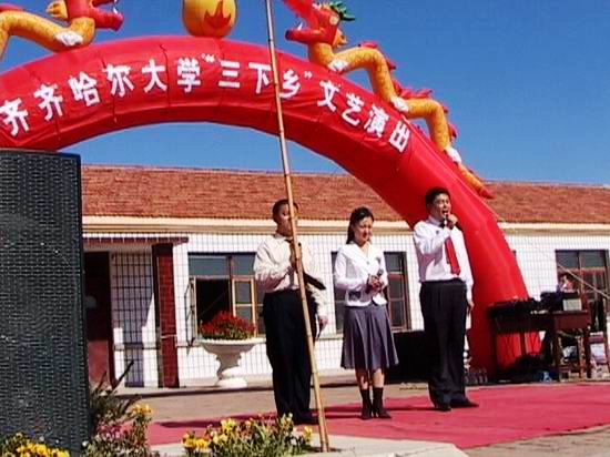 此次“壮志青春,服务社会”大学生“三下乡”暨保持共产党员先进性教育社会实践活动是我校与泰来县密切联谊的又一缩影。自2001年以来,我校理学院团委与泰来县团委共建了两座书库,资助了28名贫困学生,校校结队、校村联谊更是拉近了大学师生与泰来县人民的感情。此次教育实践基地的揭牌,又为共建双方的交流与合作构建了新的平台。