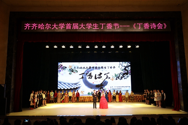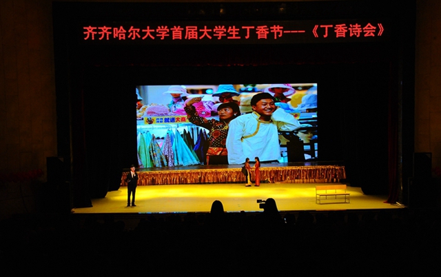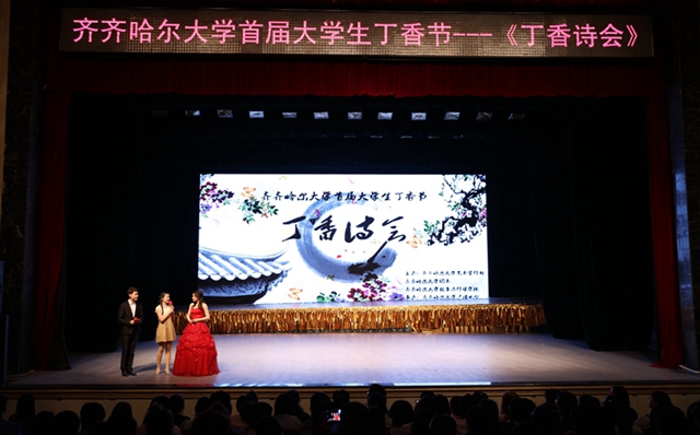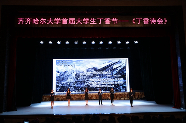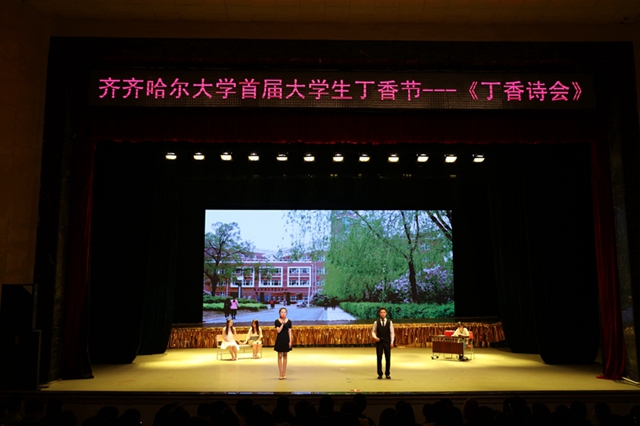 “齐齐哈尔大学首届丁香节——丁香诗会”上,我校教育与传媒学院、校园广播电台的学生朗诵了原创诗歌《来自阿里普兰的女孩》、《故乡•他乡》、《日落长河》、《深巷》、《老街》、《故人》、《不一样的全家福》以及戴望舒的《雨巷》等诗作。