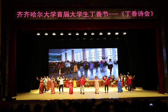 “齐齐哈尔大学首届丁香节——丁香诗会”上,来自西藏自治区的藏族、门巴族等少数民族学生还演绎了精彩的“锅庄舞”。