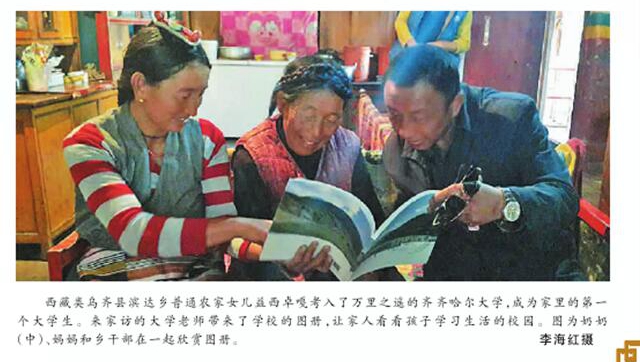 普兰是西藏自治区阿里地区的一个县,地处中国、印度、尼泊尔三国交界处,位于北纬30.5度,东经80.7度。齐齐哈尔大学坐落在嫩江之滨劳动湖畔,地处黑、吉、蒙三省区交汇处,位于东经47.3度,北纬123.9度,是中国最北的一所综合性大学。来自阿里普兰的女孩巴桑拉姆穿过大半个中国从祖国的西南边陲到齐齐哈尔大学读书,应是国内求学路程最远的同学。天路遥远,血脉相连。2015年寒假,《光明日报》的微信公众号开展了“诗意2015”诗图大赛。我校党委书记李海红的作品《来自阿里普兰的女孩》荣获了二等奖。