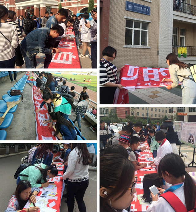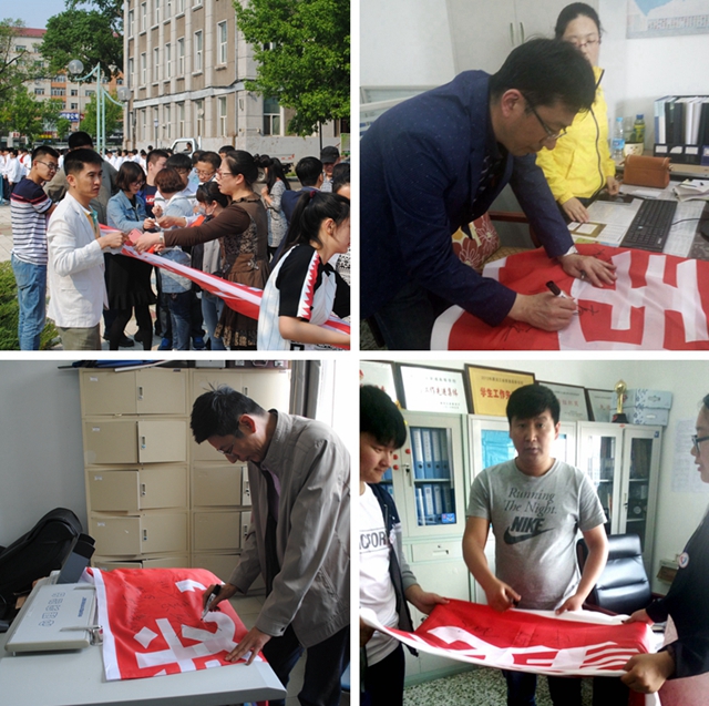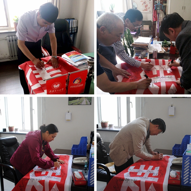 校党委书记李海红,校长马立群,党委副书记盖元臣,党委常委、常务副校长郑喜群,党委常委、副校长王刚,党委常委、副校长李英杰等出席了签名活动并在主题活动条幅上签名。