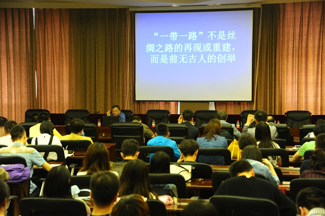 葛剑雄教授基于历史地理背景视角,深入浅出地阐述了“一带一路”战略的历史渊源、现实背景,并对未来发展提出了学者的思考,以大家学者的睿智思维与开阔的学术视野高屋建瓴又深入浅出地阐释了“一带一路”战略的有关问题,语言生动幽默,逻辑脉络清晰,让与会师生既获得学理启思,又近距离领略名家学者风采,获益良多。