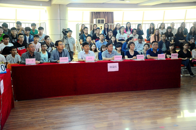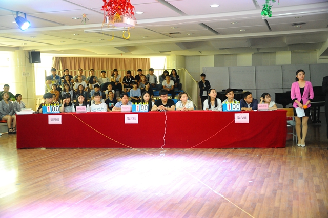 为了充分体现“平等、公平、公正”的原则,参加决赛的所有参赛队的桌号都是由各队抽签决定。各参赛队均由4名队员组成,并按顺序分别编号为1号、2号、3号,4号依次就坐。本次比赛试题分个人必答题、团体必答题、抢答题、风险题和附加题五种形式,采用现场竞赛、现场评比方式进行。由学校办公室主任张德庆、纪委副书记佟海棠、组织部副部长张永军、宣传统战部副部长何强、学生工作部(学生处)副部(处)长张树启,校工会副主席吴宝柱等组成仲裁组,对决赛中各代表队级选手答题出现的争议进行仲裁。