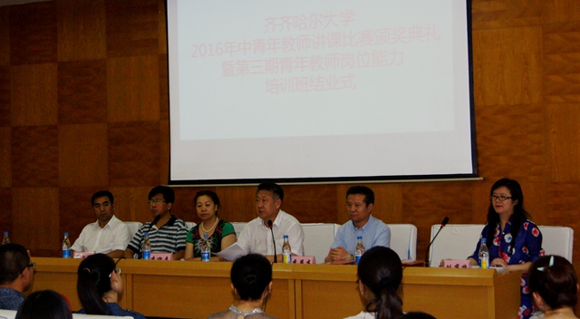 校长马立群在2016年中青年教师讲课比赛颁奖典礼暨第三期青年教师岗位能力培训班结业式上发表重要讲话。他指出,齐齐哈尔大学走过60余年的办学历程,为共和国培养了大批的优秀人才,做出了重要贡献,在新世纪抓住机遇,实现了跨越式发展。建设高水平大学之路,与每一位教师的专业素质和能力提升息息相关。青年教师作为齐齐哈尔大学未来教学与科研发展的重要力量,要尽早构建科学的教育哲学观。只有把教育哲学问题解决好,才能解决好心态、观念、态度等方面的问题,才能在教学中探索出好的教育方法。