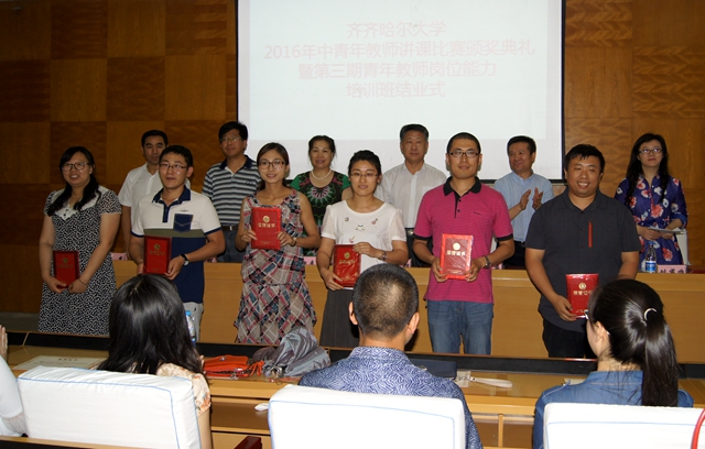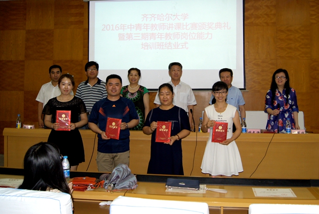 校长马立群、副校长李英杰等为2016年中青年教师讲课比赛中获奖教师颁奖