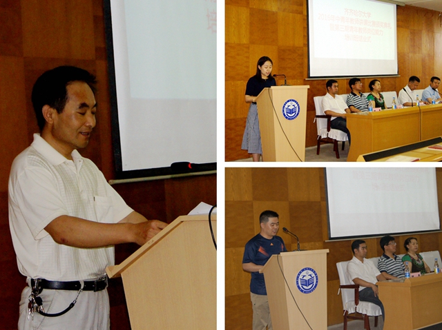 青年教师岗位能力培训班指导教师代表、文学与历史文化学院赵忠山教授在发言中鼓励青年教师热爱教师职业,全身心地投入教学工作,努力创新、追求卓越,努力成为我校教育教学改革、创新的中坚力量,为高水平大学建设贡献力量。