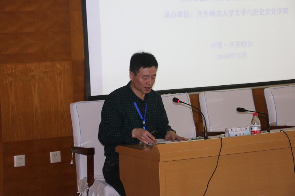 齐齐哈尔大学研究生部副主任田丽军、黑龙江省社科院研究员车霁虹、哈尔滨师范大学历史学教授王耘,哈尔滨师范大学文艺学教授赵德鸿、哈尔滨师范大学学科教学(语文)教授王金香、黑龙江大学讲师宋涛、齐齐哈尔大学文学与历史文化学院教授肖国栋相继致辞。