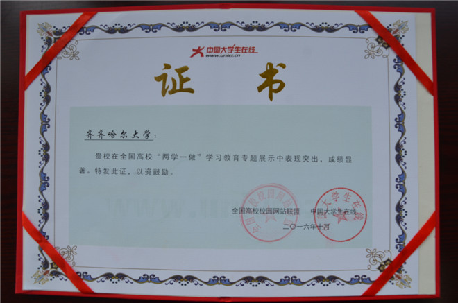在教育部中国大学生在线主办的全国高校“两学一做”学习教育专题展示中,我校积极投稿并参与各专题活动,表现突出,受到表彰。