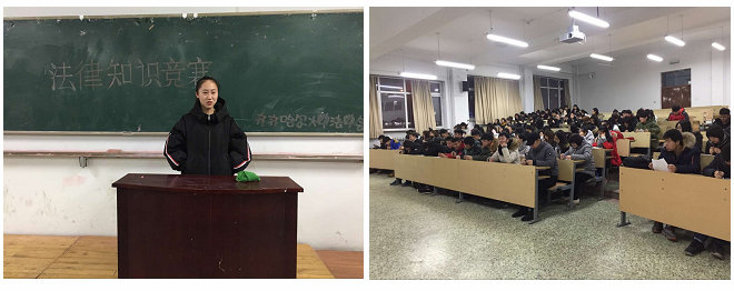 12月6日19:00,我校法学会举办了法律知识竞赛活动。法学会结合当下的一些法律热门知识出题,贴近实际,贴近生活。同学们热情高涨,踊跃参与,现场气氛活跃。与会同学都表示从中学到了许多法律知识,法治意识进一步增强。