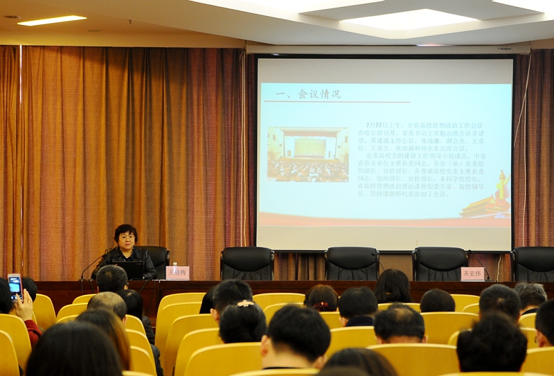 在培训班上,校党委宣传统战部部长王晓梅从六个方面解读了省委书记王宪魁同志在全省高校思想政治工作会议上的讲话精神:一要坚持社会主义办学方向;二要提高学生思想政治素质;三要全面提高教师综合素养;四要创新高校思想政治工作方式方法;五要打造过硬高校思想政治工作队伍;六要加强和改善党对高校工作的领导。