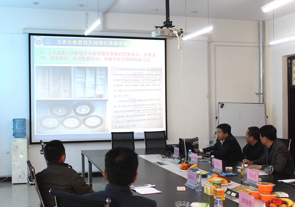 汇报会上,项目总负责人、我校食品科学与工程学科带头人郑喜群教授首先就玉米主食星创天地建设情况和预期规划作了汇报。随后,黑龙江省农业科学院牡丹江分院、黑龙江兴和生物科技有限公司、黑龙江伊春生态经济开发区管委会、黑龙江八一农垦大学等项目参与单位代表分别作了汇报。汇报结束后,唐晓明、潘明华分别就国家级“星创天地服务平台”项目立项的目的、意义以及几家星创天地项目建设和预期规划做了点评,给“星创天地服务平台”项目的后期建设提出了明确要求。