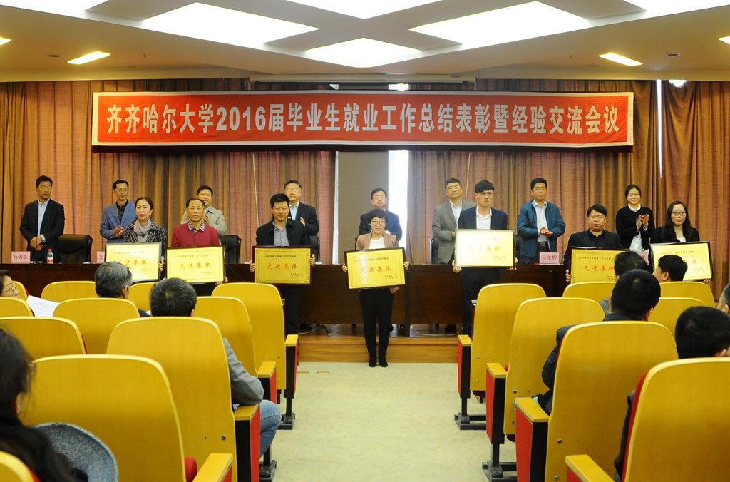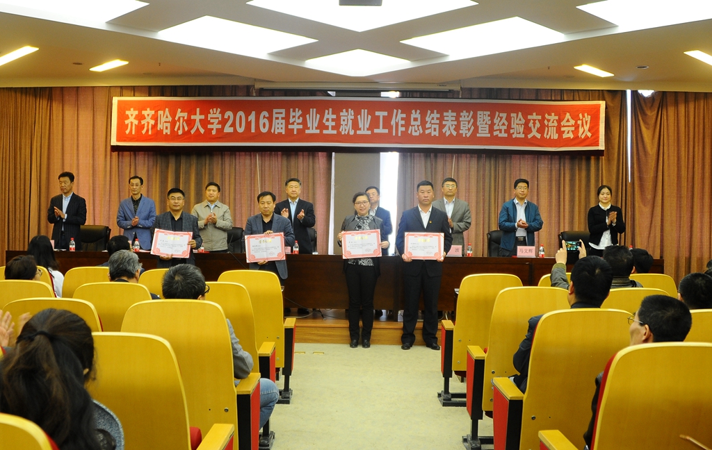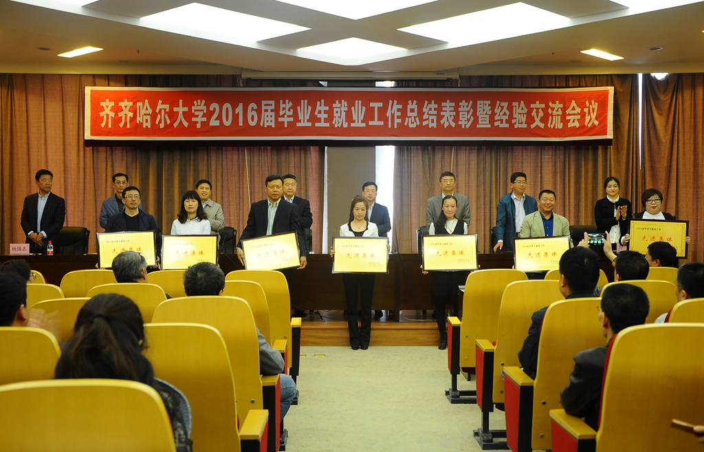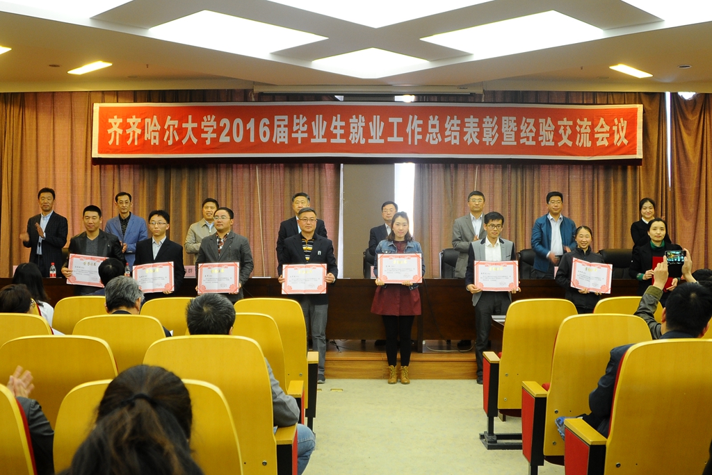 会上,校党委副书记盖元臣宣读了《关于命名表彰2016届毕业生就业工作先进集体和先进个人的决定(齐大发字[2017]3号)》,与会领导分别为获表彰集体及个人颁发了奖牌和证书。