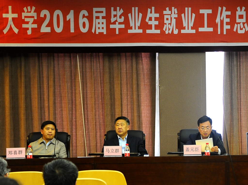 5月4日下午,学校在德润大厦四楼会议室召开2016届毕业生就业工作总结表彰暨“就业工作加强年”经验交流会议。校长马立群、校党委副书记盖元臣、常务副校长郑喜群出席会议,学生工作部(学生处)、武装部(保卫处)、教学实验设备管理中心、就业指导处、校团委以及各相关部门负责人、各学院党委书记、院长、副书记副院长、全体辅导员、教师代表和就业指导处全体成员参加了会议。会议由就业指导处处长杨国志主持。