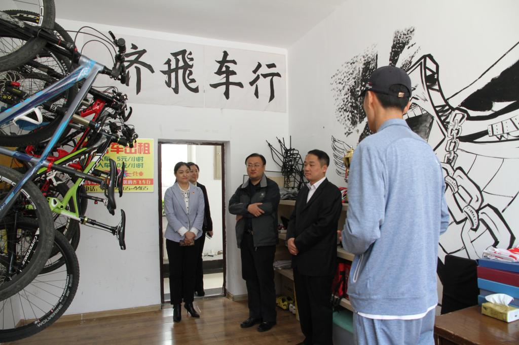 在参观过程中,校团委副书记苏醒向团省委领导详细介绍了我校大学生创业园的基本情况以及创业园为入驻企业提供的优惠政策。陈凯云一行先后走访了澄篁工艺品商店、一字不二捺剧本创意工作室、李司媛插画工作室、虚拟现实VR单兵设备公司、食优客黄金玉米食品有限责任公司等大学生创业项目,并与创业企业的学生进行了亲切交流,详细询问了企业目前的发展状况以及遇到的困难等问题。