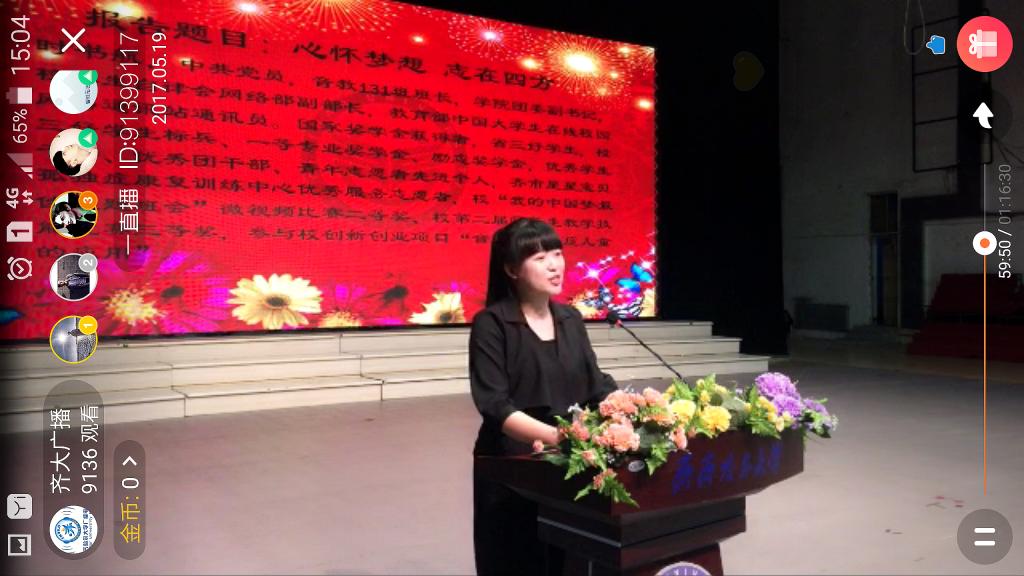 为开辟校园文化传播新方式,占领移动互联时代高校宣传阵地,提高学校的知名度和影响力,在学校党委宣传统战部新闻中心的大力支持和配合下,学生工作部(学生处)积极利用网络直播新模式,在“荔枝FM直播”和“一直播”手机APP同步进行音、视频直播,并通过“齐大学子之声”微信公众平台、齐齐哈尔大学官方微博、齐齐哈尔大学广播电台微博积极推送报告会直播链接,同学们在直播平台踊跃留言,反响热烈,截至5月22日,仅“一直播”视频直播就有9100余人次观看报告会直播或回放。通过网络直播的方式,延伸了我校思想政治教育的触角,积极践行了习近平总书记在全国高校思想政治工作会议上的重要讲话精神,实现了把高校思想政治教育工作“贯穿教育教学全过程,实现全程育人、全方位育人”。