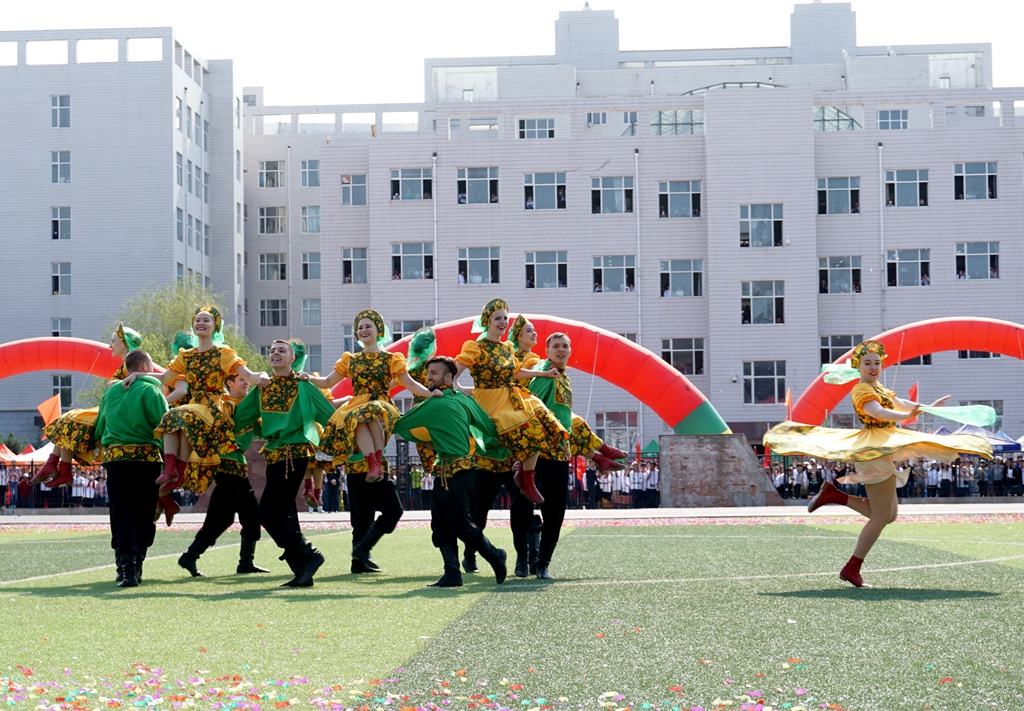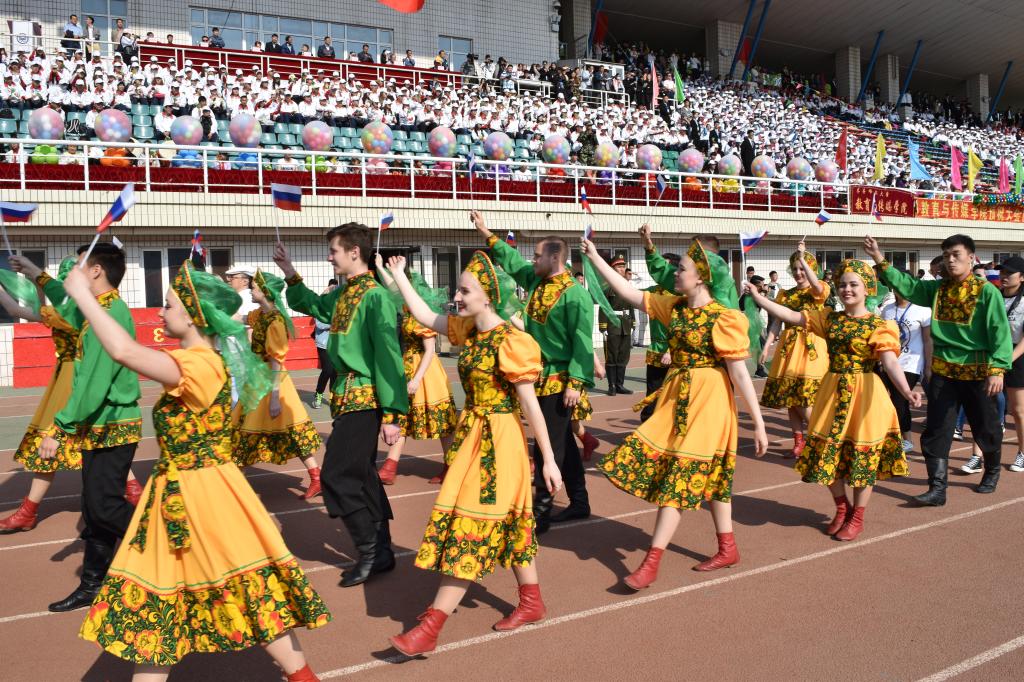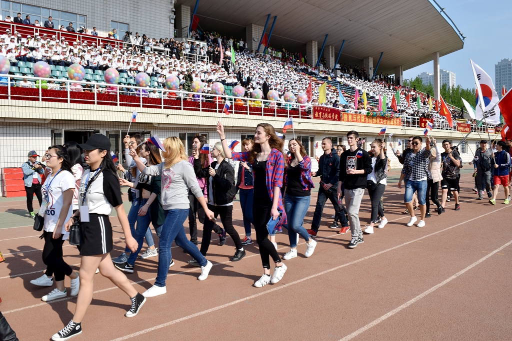来自全校各单位、各学院师生代表队迈着整齐的步伐,精神饱满地依次在主席台前接受大会检阅。其中,来自俄罗斯、韩国、越南、巴基斯坦等国留学生参加了检阅,集中展示了我校留学生的新面貌;研究生部师生意气风发地接受了大会的检阅,充分展示了我校研究生教育蓬勃发展的新风貌。