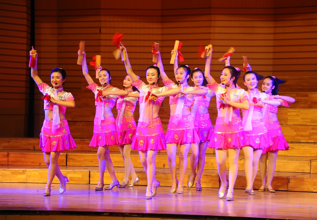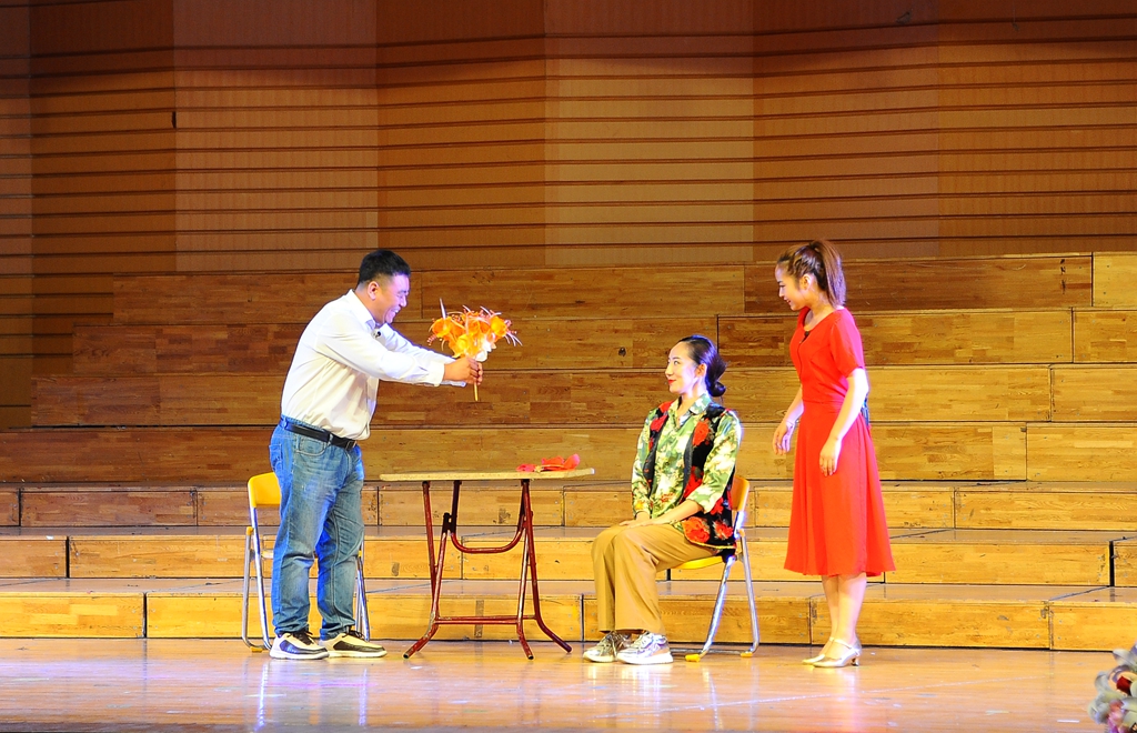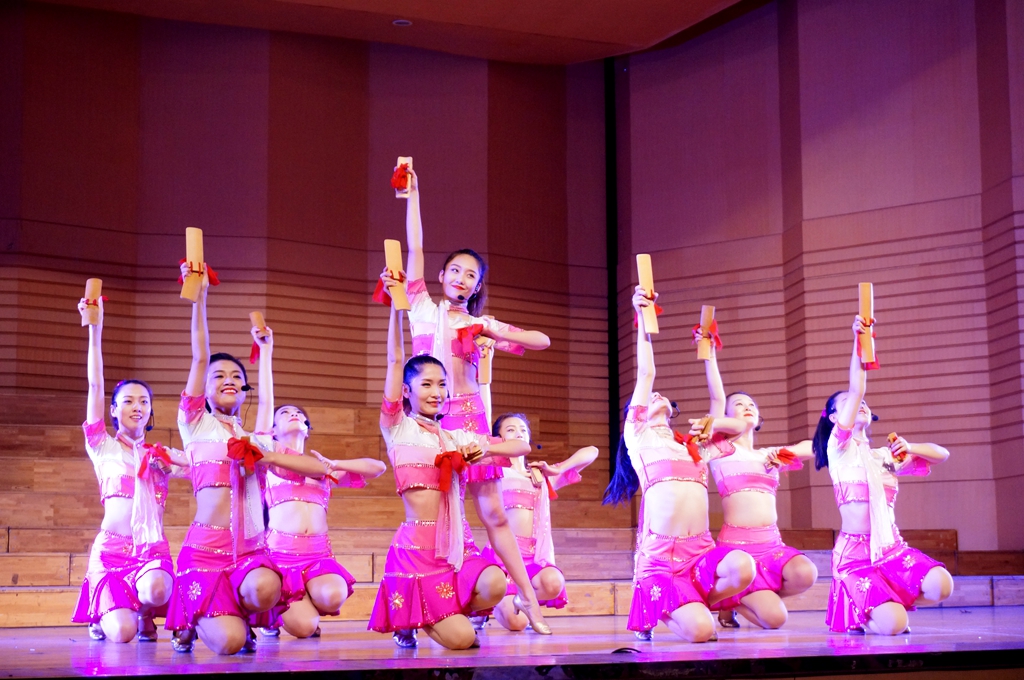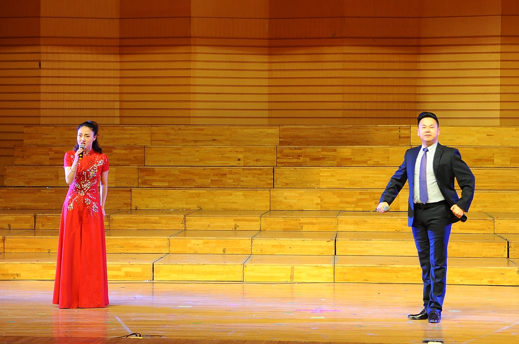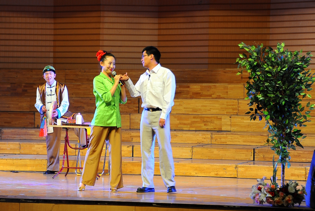 黑龙江省龙江剧艺术中心编排了12个优秀的龙江戏剧歌舞节目。演出在集体舞蹈《冰雪情趣》中拉开了帷幕,龙江少女们精湛的演绎瞬间点燃了全场的热情;男生独唱《悟空》、歌舞快板《放飞文明》、龙江剧小品《非诚勿扰》《刨根问底》、女生独唱《带我到山顶》、龙江剧戏歌《龙江姑娘火辣辣》等一系列极富地方特色的艺术作品,赢得了在场观众的阵阵掌声;由国家一级演员李雪飞、高运来带来的经典龙江剧选段《讲义气可不能心思太乱》,把台下观众的热情带入高潮;笛子独奏《牧民新歌》、女生独唱《芦花》悠扬婉转,武功与舞蹈《武林风》一气呵成、气势磅礴;歌舞《共筑中国梦》把现场气氛推向高潮,赢得在场观众雷鸣般的掌声。师生们沉浸在美妙的乐声中,久久回味。