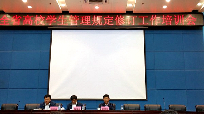 会议由省教育厅高校学生处处长高铁春主持,省教育厅党组成员、副厅长姜同河就文件修订工作做出重要指示,教育部高校学生司学籍管理处处长解汉林对《普通高等学校学生管理规定》(教育部令第41号)进行了深入解读。