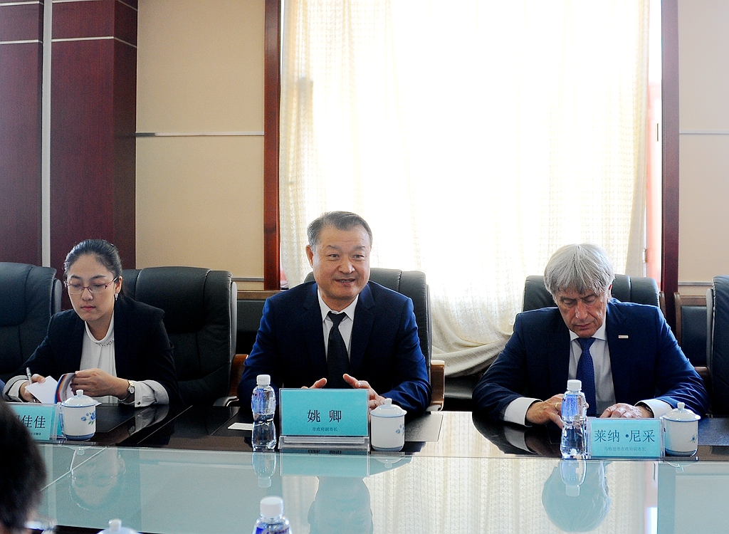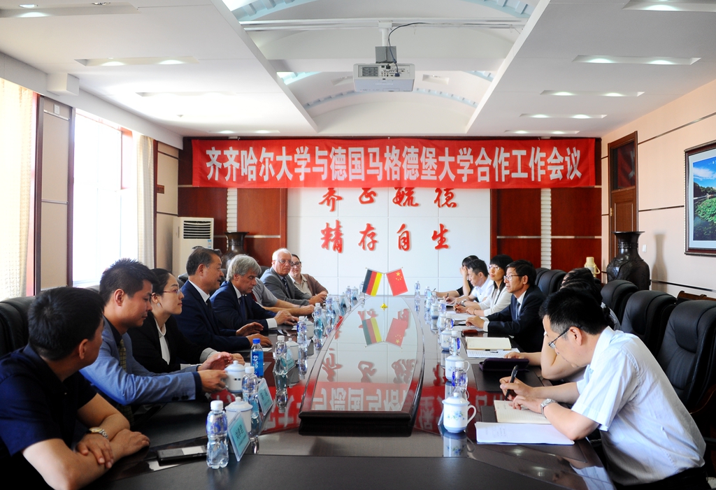 齐齐哈尔市政府副市长姚卿在讲话中表示,德国的机械制造行业居于世界领先地位,马格德堡市是德国知名的工业城市,重型机械制造等行业在德国工业体系中占有重要地位,这次马格德堡市政府代表团来齐齐哈尔市参观访问期间,两市正式建立了友好合作关系,这也为马格德堡大学和齐齐哈尔大学的合作与交流创造了良好条件,马格德堡大学是德国一所重要的高校,齐齐哈尔大学是坐落在齐齐哈尔市的唯一一所省属重点综合性大学,市政府热切希望在两个城市建立友好关系的大框架下,两校能积极开展务实合作,使两校师生受益。希望齐齐哈尔大学以此为契机,继续提高国际交流与合作水平,为地方经济社会发展做出更大的贡献。