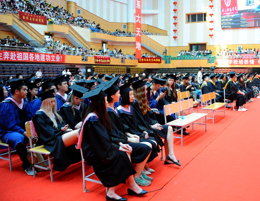 校领导为留学生、研究生、本科生代表颁发毕业证书,并授予学位