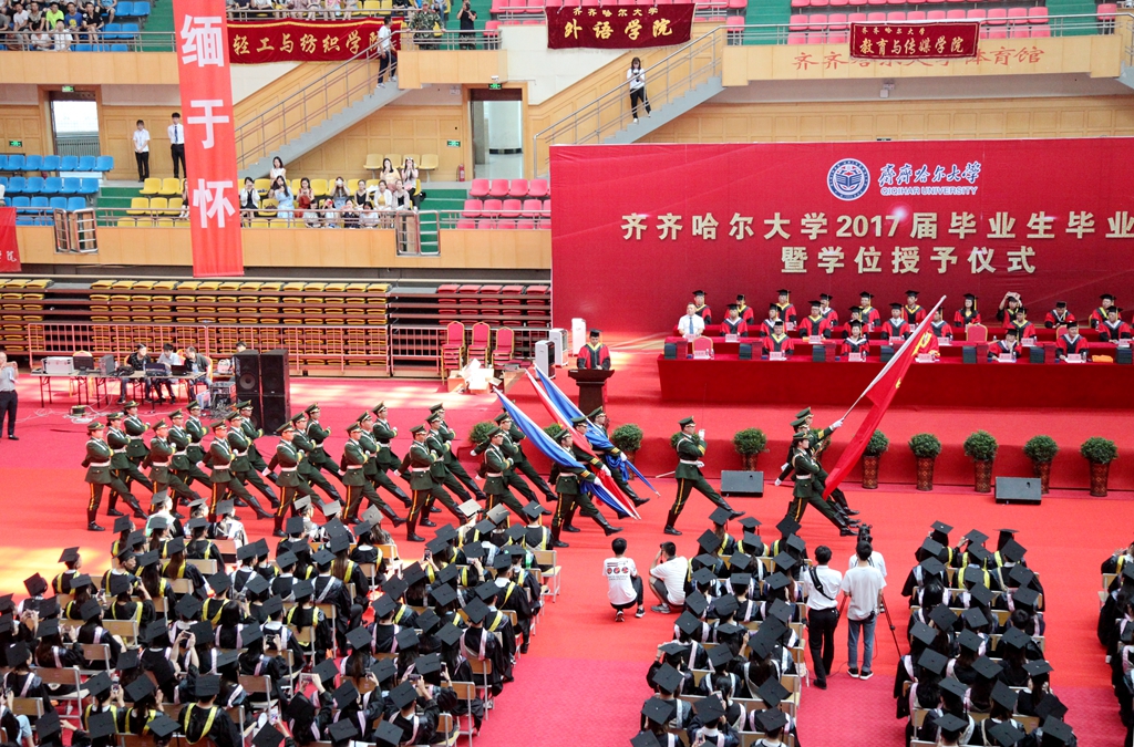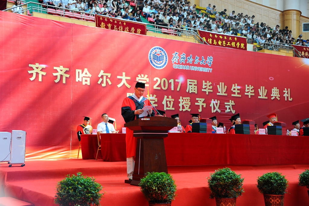 6月27日上午,“齐齐哈尔大学2017届毕业生毕业典礼暨学位授予仪式”在学校体育馆隆重举行。