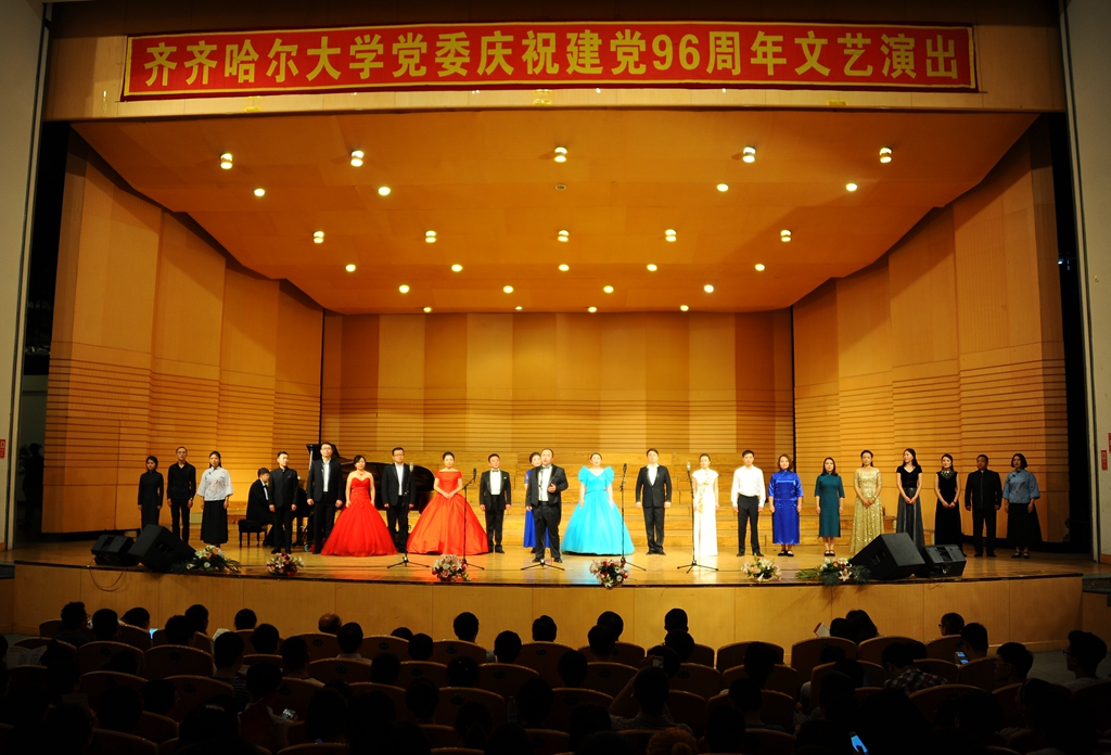 6月30日下午,“喜迎十九大 颂歌献给党”齐齐哈尔大学党委庆祝建党96周年文艺演出在学校音乐厅隆重举行。
