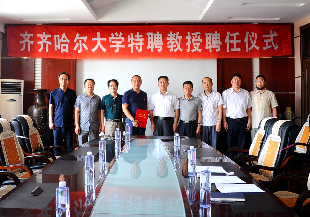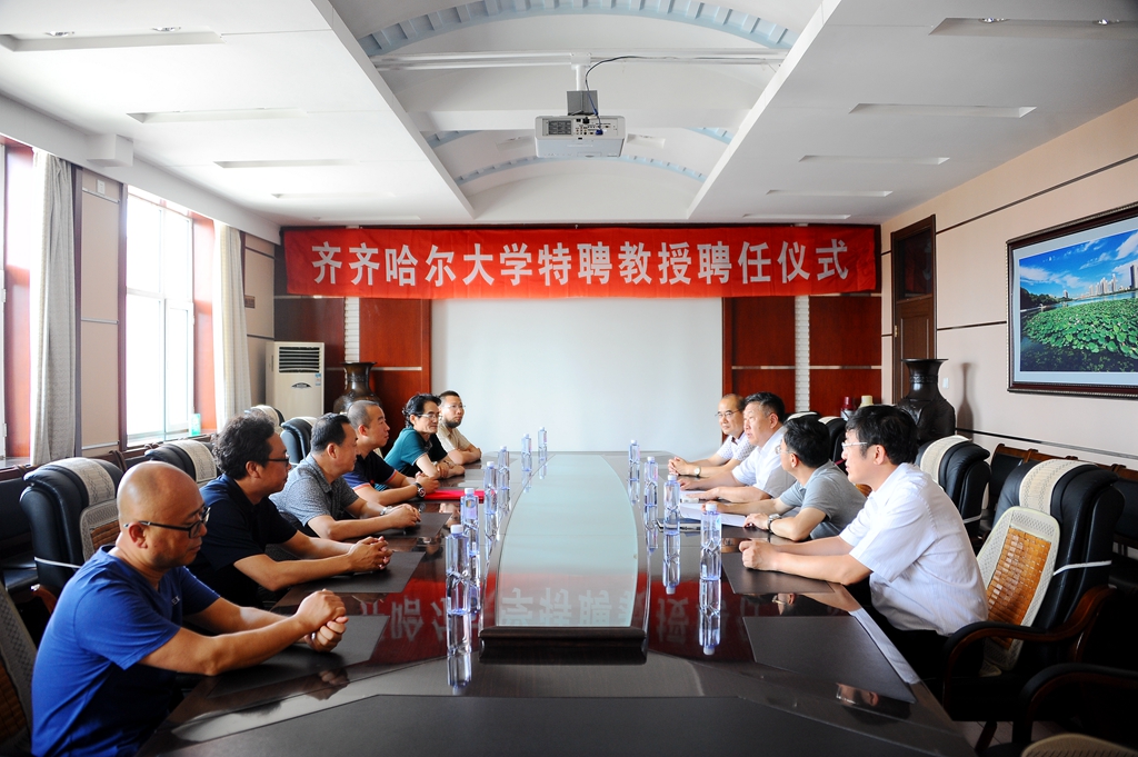 7月7日下午,学校在中区校办公楼504会议室举行齐齐哈尔大学特聘教授聘任仪式。校长马立群、校党委副书记盖元臣、我校2004届校友牟克出席仪式,人事处处长张文治、研究生部主任刘喜军、美术与艺术设计学院领导班子成员以及相关学科负责人参加了聘任仪式。仪式由盖元臣主持。