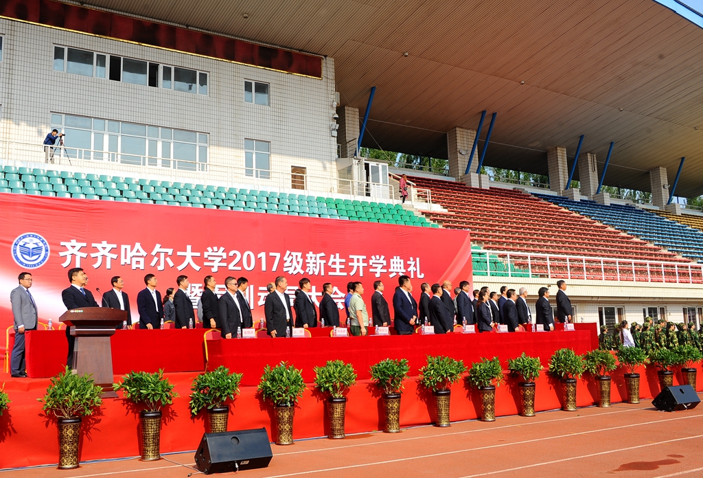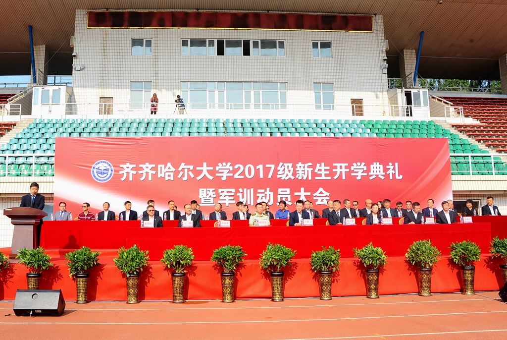 8月26日上午,齐齐哈尔大学2017级新生开学典礼暨军训动员大会在西区体育场隆重举行。