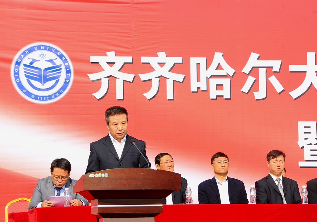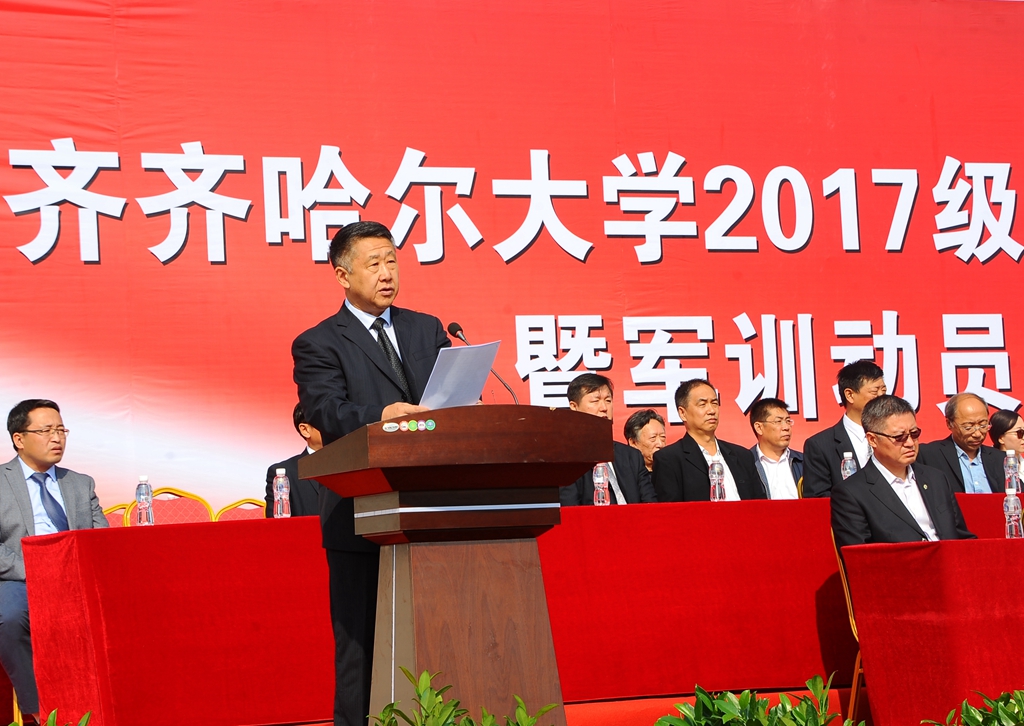 校长马立群在大会上讲话。他说,今天,我们在这里隆重举行2017级新生开学典礼暨军训动员大会。我代表学校,对成功考入齐齐哈尔大学的本科生、研究生表示热烈的祝贺和诚挚的欢迎!向一路支持你们成长成才、付出辛勤汗水的父母、老师们表示深深的敬意!