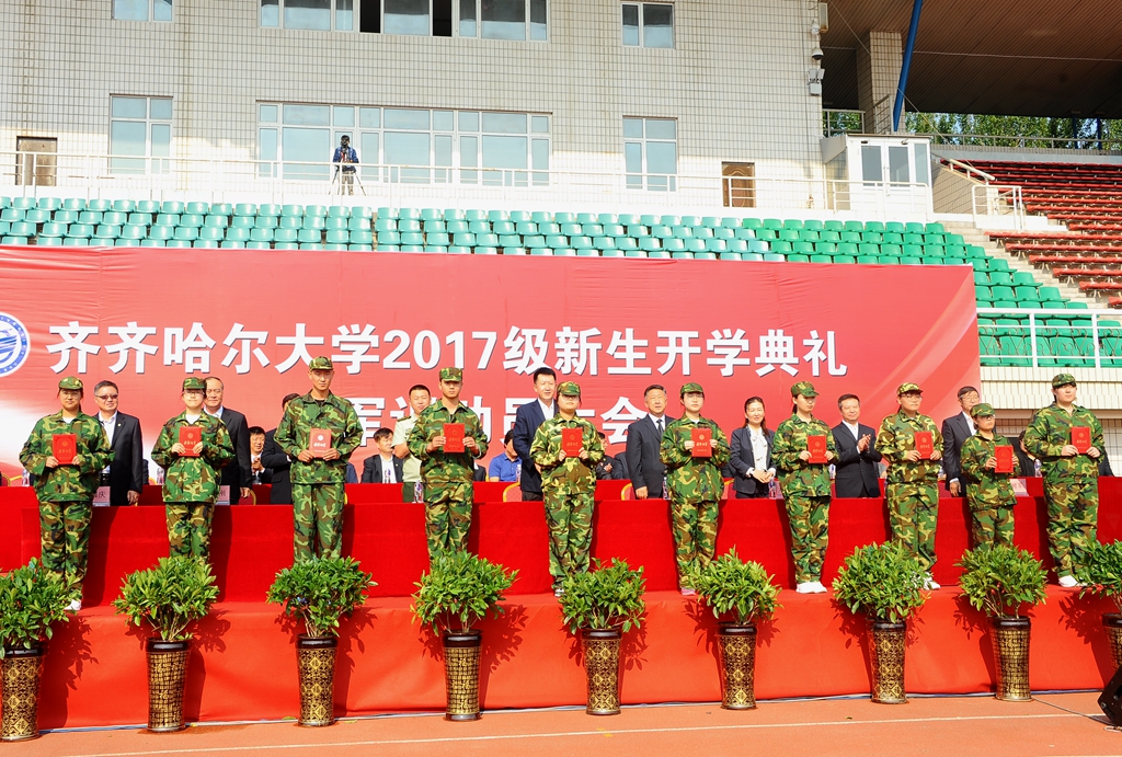 2017级来自全国31个省、市、自治区的6020名本科生、382名“专升本”同学、研究生新生代表以及各学院辅导员老师、武警齐齐哈尔支队的教官参加了大会。
