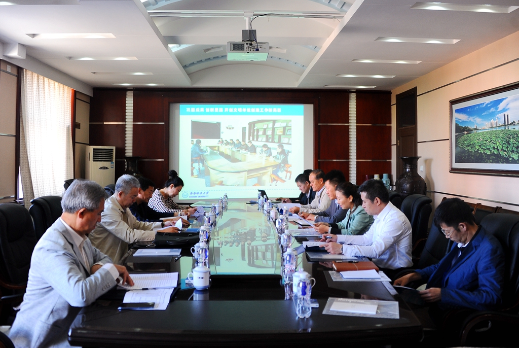 校党委书记、校文明委主任兰景力在讲话中首先代表学校对高尚斌和李博文一行来我校对全国文明单位创建工作进行复查表示热烈欢迎,对省、市文明办长期以来对我校文明单位创建工作的支持与帮助表示感谢。他指出,按照中央、省、市、区关于文明单位创建的要求,学校党委和行政对精神文明建设工作高度重视,常抓不懈,我校文明单位创建工作持久开展,扎实有效。三年来,全校三万名师生凝心聚智,众志成城,大力开展文明单位创建工作,取得了较好的成效。同时,我们也清醒地认识到,文明单位创建工作还存在着一定的不足。请各位领导给我们多提宝贵意见,多指不足之处,使我们能够改正不足,扬长补短,不断提升文明单位创建工作的科学化水平,开创我校文明单位创建工作新局面,以优异的工作业绩向党的十九大献礼!