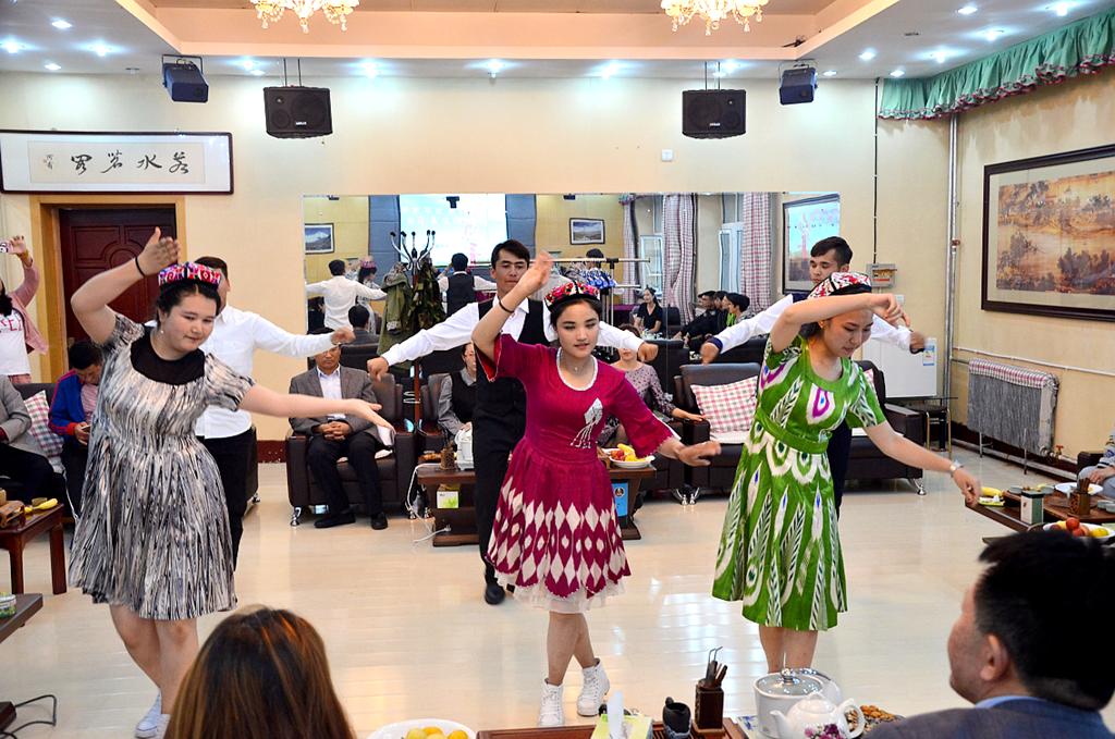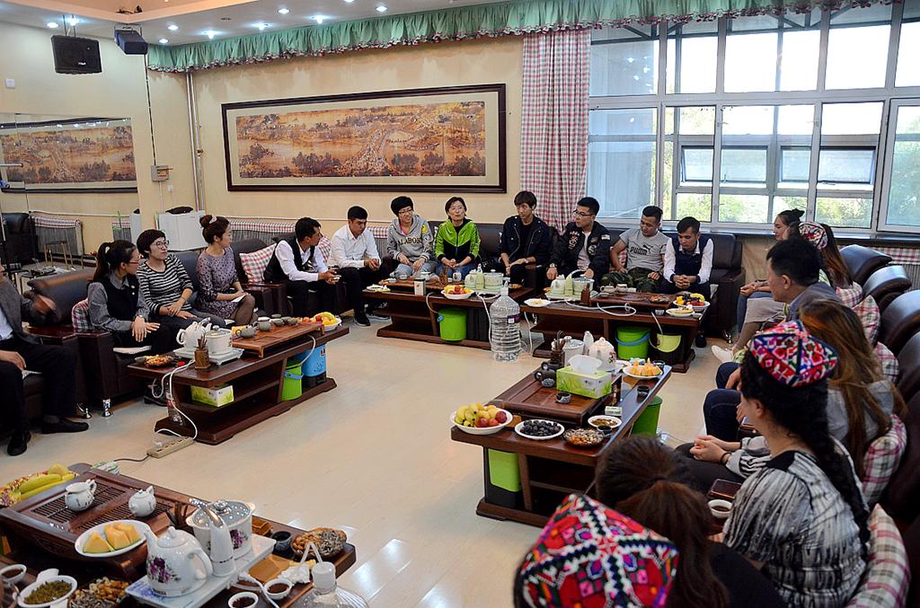 茶话会过程中,维吾尔族、哈萨克族同学为与会师生表演了富有民族特色的舞蹈,他们舞姿优美、现场热情洋溢,掌声不断。