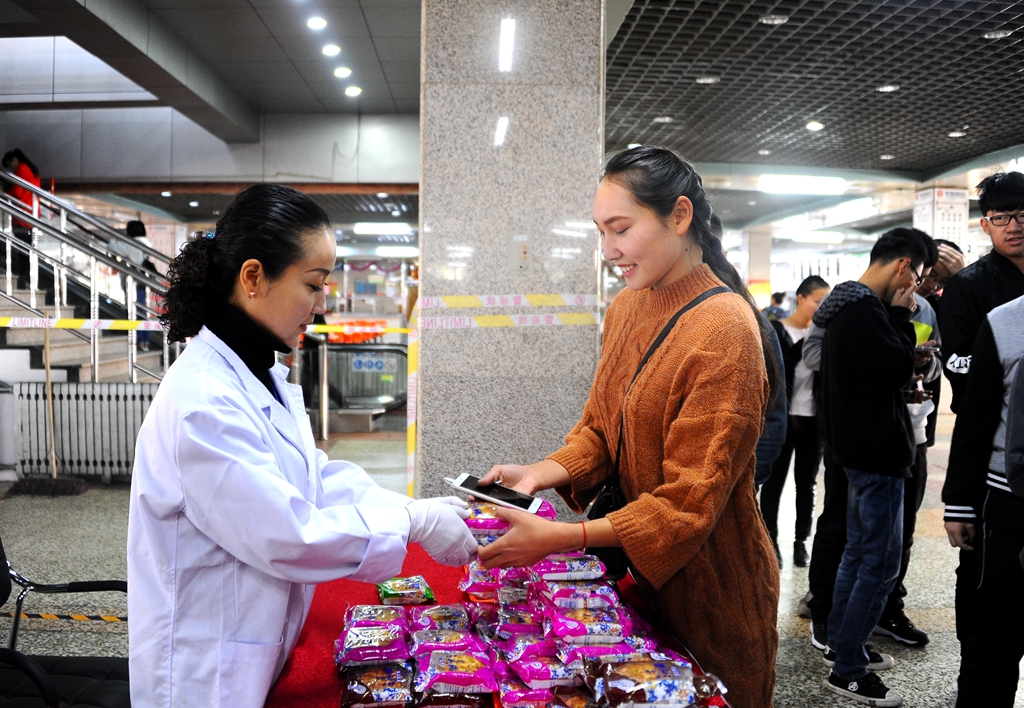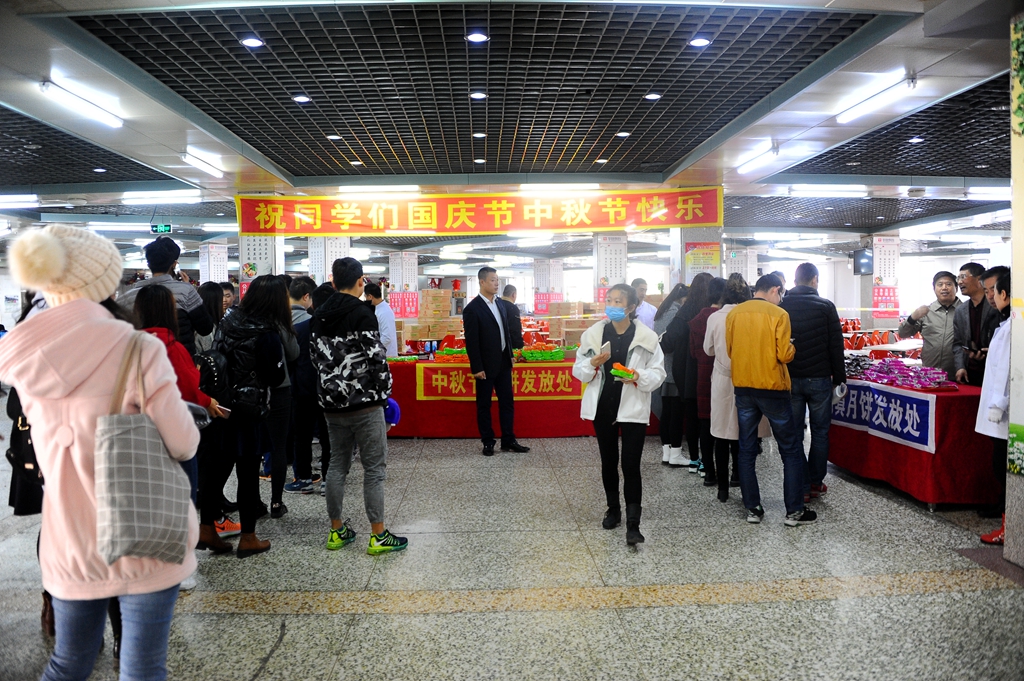10月4日上午,我校中区学生食堂二楼内弥漫着喜庆和甜蜜的气息,同学们满怀着喜悦的心情,早早就等候在了月饼发放地点。
