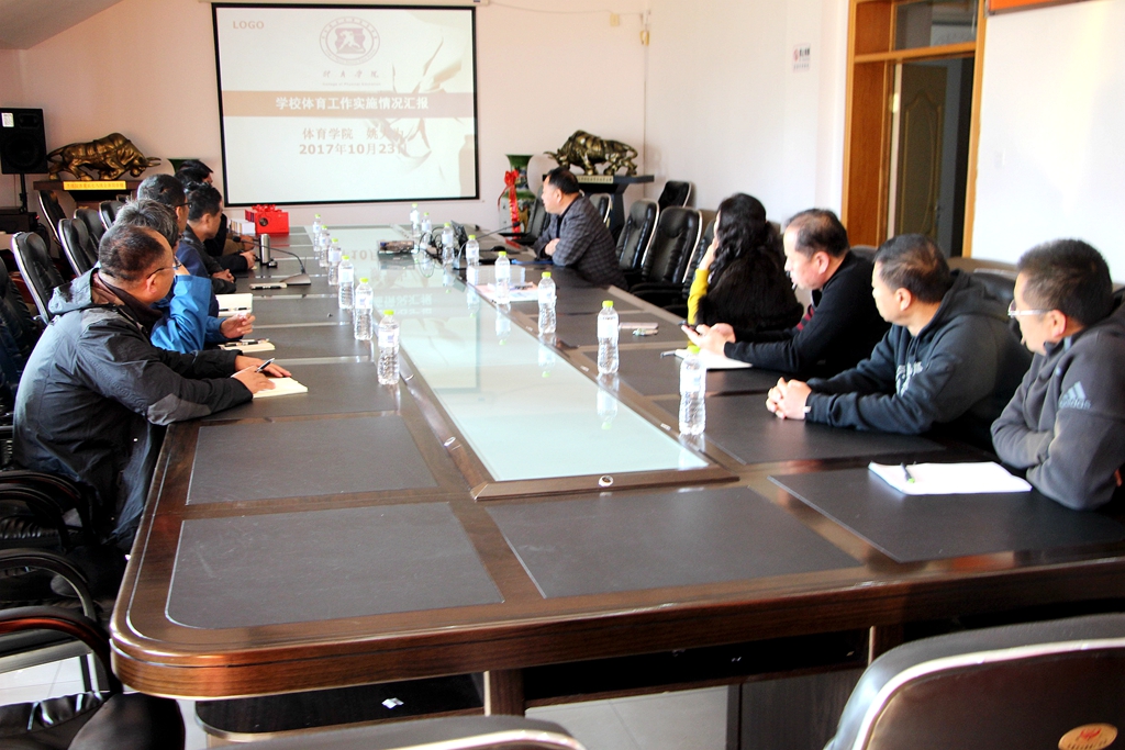 体育学院院长姚大为详细介绍了我校体育学院近年来在教学、科研、学科建设、师资队伍等方面的发展情况,并就大学体育教学综合改革、大学生体质测试、国民体质测试、社区共建等工作进行了具体说明。