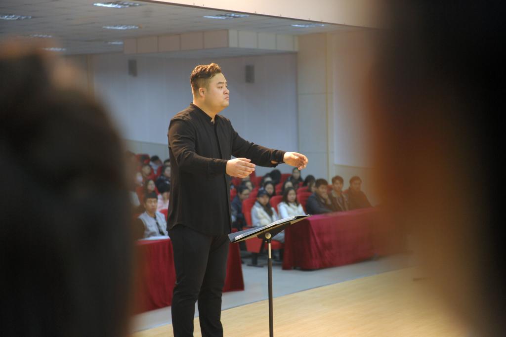 由孙相根教授的硕士研究生李亚正同学担任指挥,给观众带来的《月亮代表我的心》《九儿》《美好的远方》《生死不离》《小路》《茶山云雾》等合唱歌曲获得了广大师生一致好评。