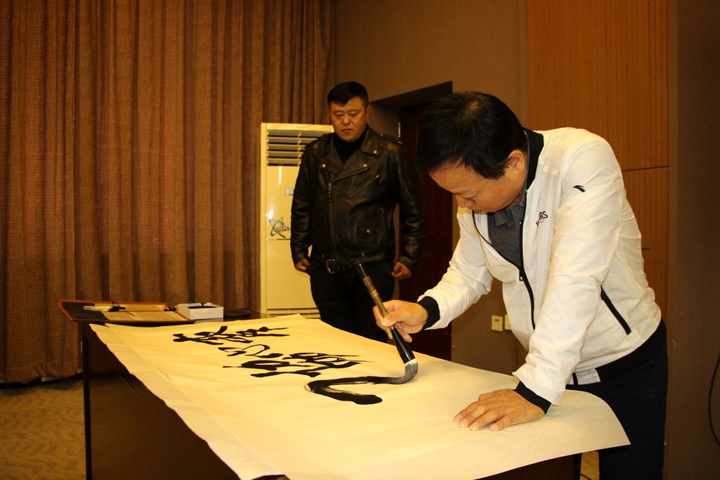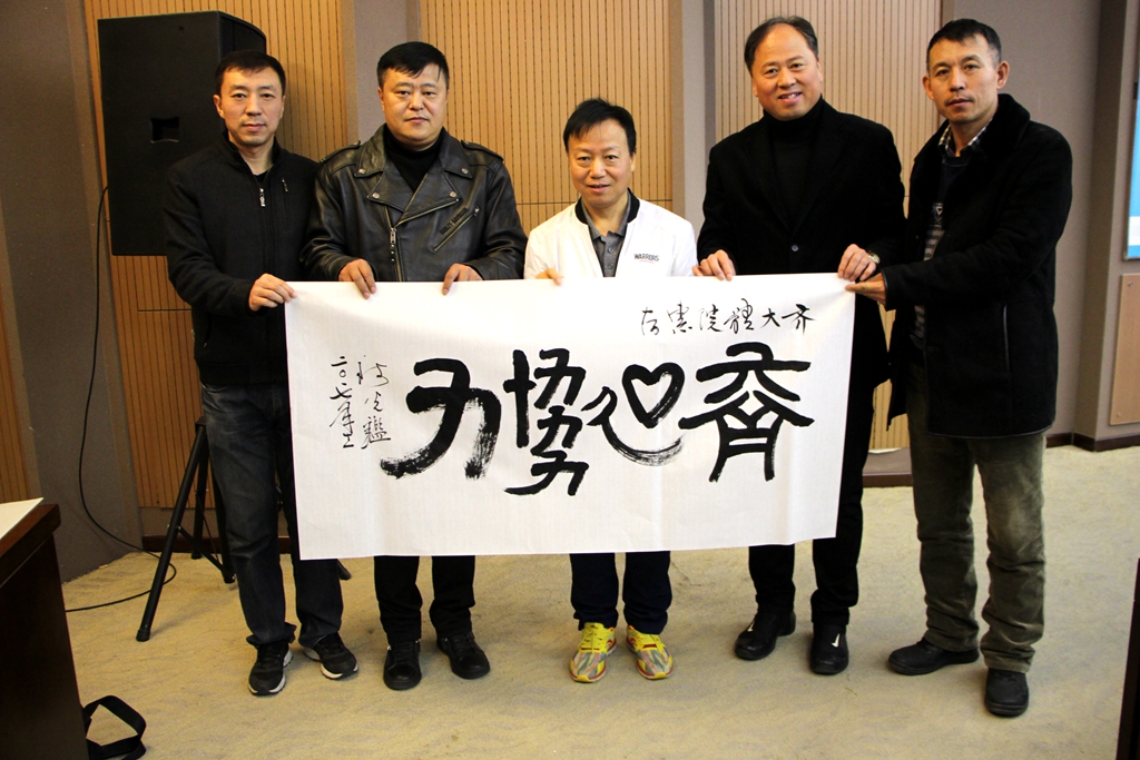 钱光鑑还现场为我校体育学院题词“齐心协力”赠送我校。