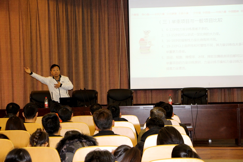4日上午,钱光鑑在德润大厦四楼会议室为我校师生作了题为《青少年科学化力量训练》的学术报告,提出了“全民力量健身”、“力量健康”、“力量防治伤病”、“力量时尚”、“力量时代”、“力量创新”、“力量研发”及“人体力量学”等一系列极具前瞻性的“力量理论”。报告语言风趣、思想深刻、内容丰富,让与会师生开阔了视野,深受启发。台上台下师生互动热烈,博得阵阵掌声。