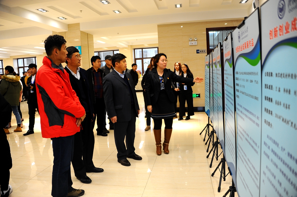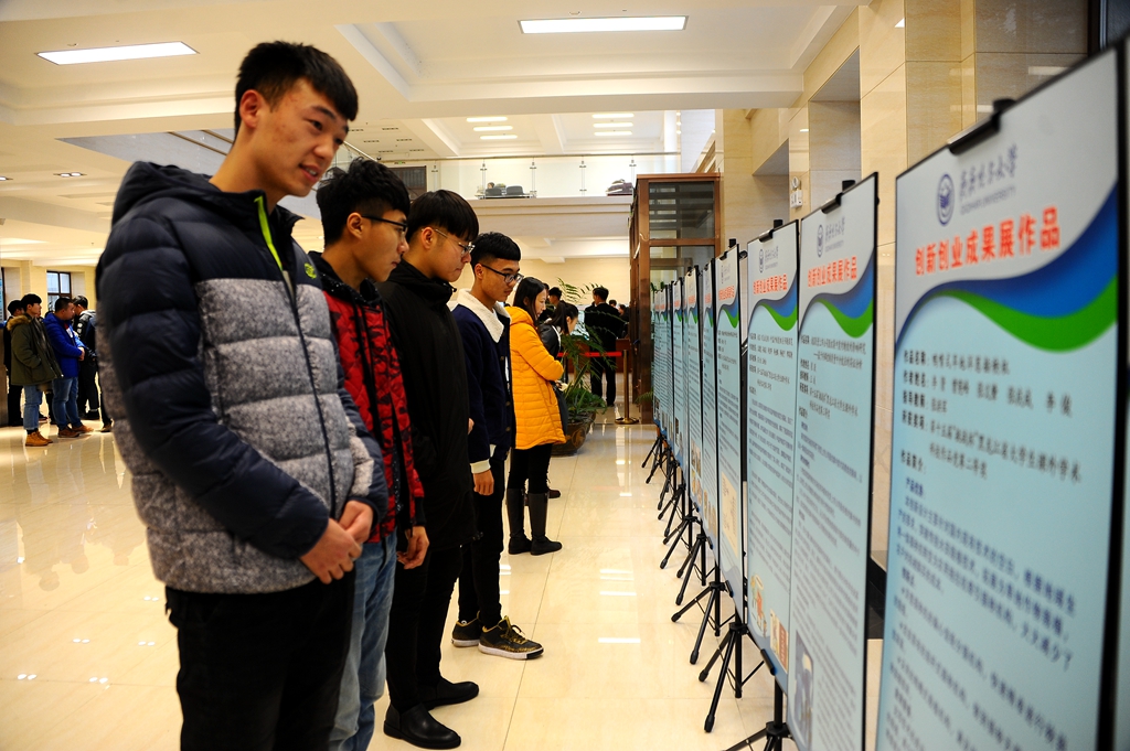 开幕式结束后,与会领导、老师和学生代表观看了我校大学生创新创业成果展。此次成果展共展出40余项作品,主要展示了我校学生近两年在全国全省创新创业赛事中的获奖作品,目的在于激励我校青年学生积极投身到大学生创新创业的实践锻炼中来,努力完善自己,成长为“大众创业、万众创新”的生力军,为龙江经济发展和我校高水平大学建设事业做贡献。