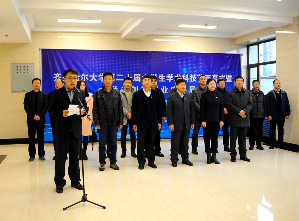 他指出,多年来,我校积极响应国家号召,高度重视大学生创新创业工作,努力作为,勇于担当,以科技节为依托,积极开展大学生创新创业活动,取得了可喜的成绩。一年一度的大学生学术科技节已成为学校人才培养工程的重要组成部分,是我校素质教育的有益补充,是广大学生创新创业的广阔疆场。今年的科技节以“智汇齐大,创享青春”为主题,在原有传统竞赛项目的基础上,举办大学生创新创业成果展,旨在展示我校大学生近两年的创新创业成果,鼓励更多学生积极投身大学生创新创业活动中去,挖掘自身创新潜能,在实践中检验自己、磨练自己、提升自己。