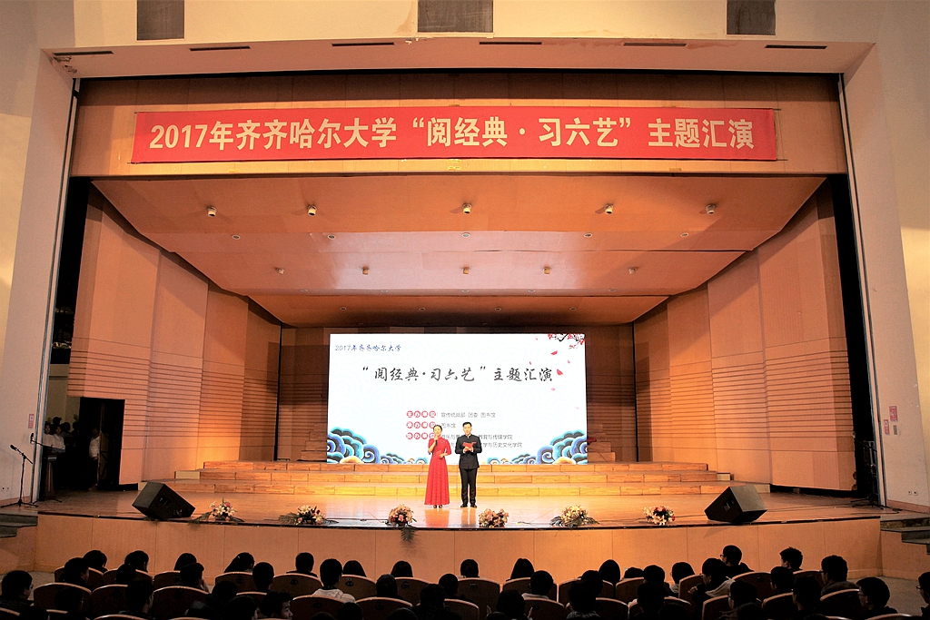 11月18日晚6时,齐齐哈尔大学2017“知网杯”国学知识竞赛颁奖典礼暨“阅经典 习六艺”主题汇演在音乐厅隆重举办。本次活动由校党委宣传统战部、校团委和图书馆主办,图书馆承办,音乐与舞蹈学院、经济与管理学院、教育与传媒学院以及文学与历史文化学院协办。校长马立群、校党委副书记齐宏伟、副校长郑喜群、副校长张树军出席活动,学校相关单位负责人、各学院主管学生工作的党委书记、副书记副院长和我校1000余名师生一起观看了本次演出。