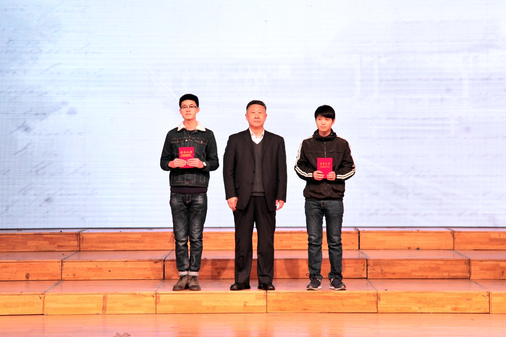 宣传统战部部长王晓梅、校团委书记苏醒、图书馆馆长宋波为获得三等奖的队伍颁奖
