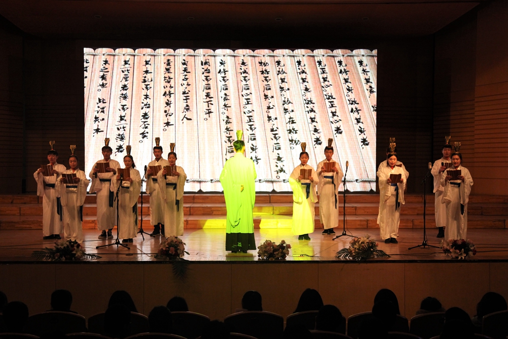 诵读国学经典,让华夏精神在我们的血液中流淌,让民族文化支撑我们人格的脊梁。朗诵表演《大学》拉开了本场文艺汇演的序幕,表演者声情并茂,饱含对阅读的喜爱和对经典的敬仰,深刻解读名家作品,深情演绎文章意境,让观众们感受到了读书的魅力、文字的优美和书香的陶醉,为台下师生奉上了一场传统文化的视听盛宴。